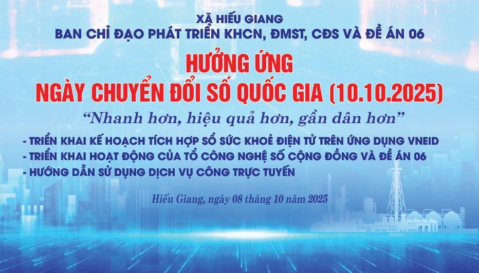 Sáng ngày 08/10/2025, Ủy ban nhân dân xã Hiếu Giang tổ chức Hội nghị hưởng ứng Ngày Chuyển đổi số Quốc gia (10/10) và triển khai kế hoạch tích hợp số sức khỏe điện tử trên ứng dụng VNeID.