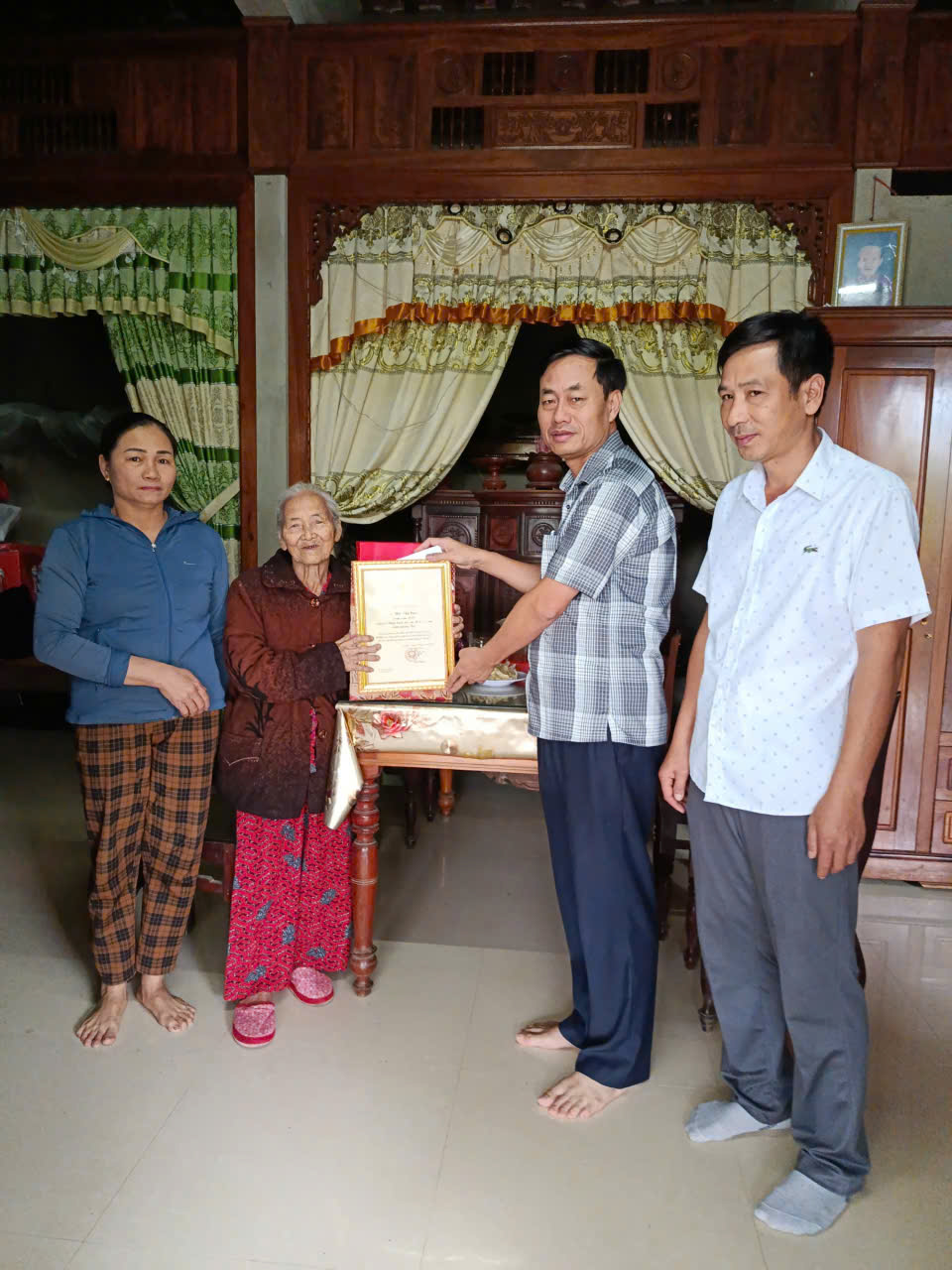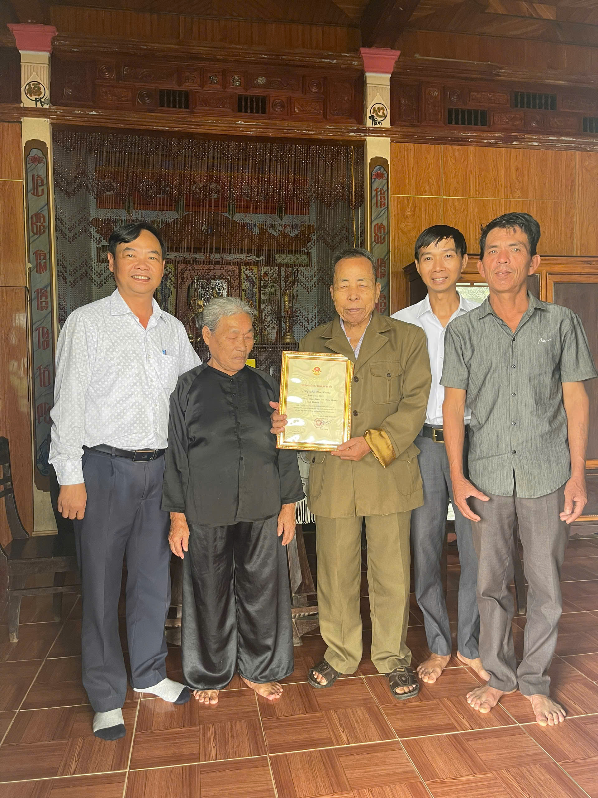 Trong dịp này, xã Hiếu Giang có 03 cụ tròn 100 tuổi được nhận Thiệp mừng thọ của Chủ tịch nước, và 42 cụ tròn 90 tuổi được nhận Thiệp chúc thọ của Chủ tịch UBND tỉnh Quảng Trị, cùng quà chúc thọ theo quy định. Tại các gia đình đến thăm, lãnh đạo xã cùng các thành viên trong đoàn đã ân cần thăm hỏi sức khỏe, đời sống của từng cụ, bày tỏ lòng kính trọng và tri ân sâu sắc đối với những đóng góp của các cụ trong sự nghiệp xây dựng, ổn định xã hội và phát triển của quê hương.