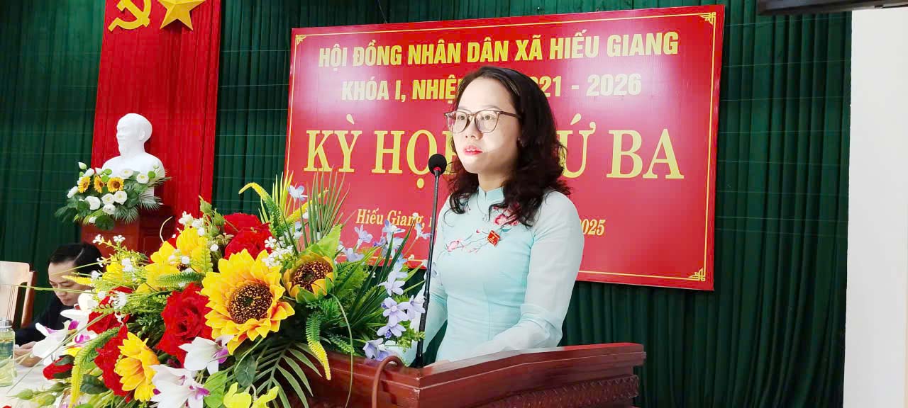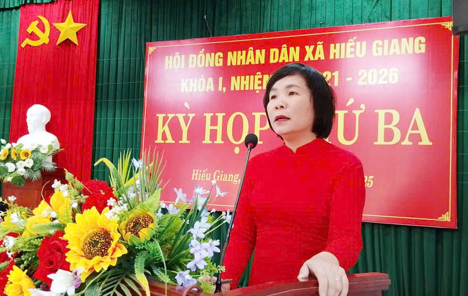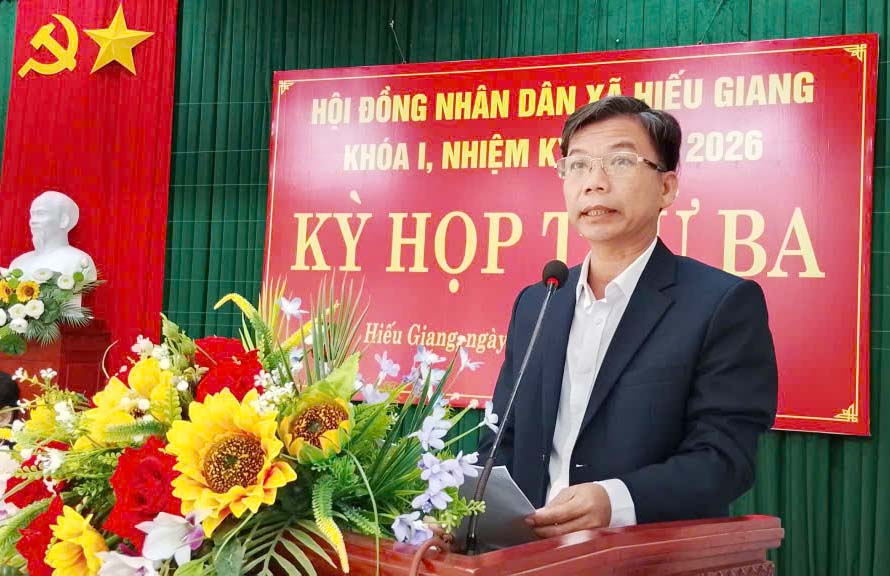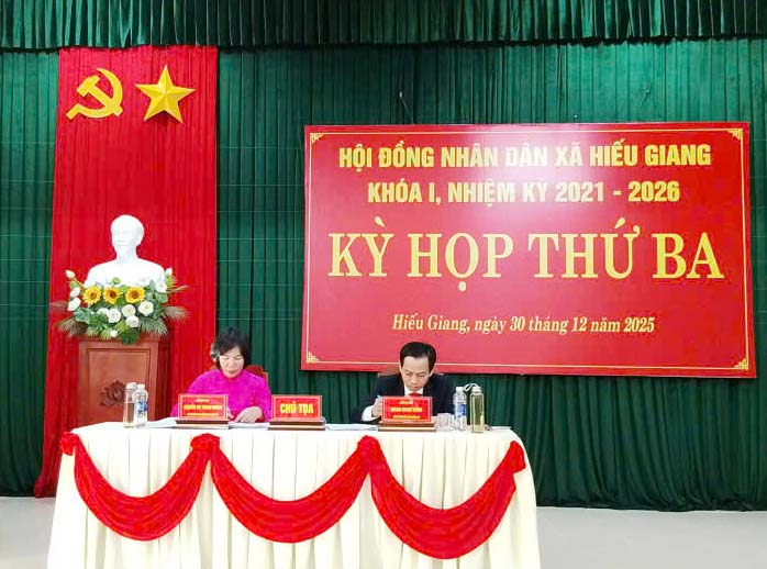 Ngày 30/12/2025, Hội đồng nhân dân (HĐND) xã Hiếu Giang khóa I, nhiệm kỳ 2021-2026 tổ chức kỳ họp thứ Ba, kỳ họp thường lệ cuối năm nhằm đánh giá toàn diện tình hình phát triển kinh tế - xã hội, quốc phòng – an ninh năm 2025, giai đoạn 2021-2025; thống nhất mục tiêu, định hướng, giải pháp chủ yếu năm 2026 và kế hoạch phát triển 5 năm giai đoạn 2026-2030 cùng nhiều nội dung quan trọng khác. Đồng chí: Nguyễn Thị Thanh Hương, Bí thư Đảng ủy, Chủ tịch HĐND xã; Hoàng Quang Thắng, UVBTV Đảng ủy, Phó Chủ tịch HĐND xã đồng chủ trì kỳ họp.