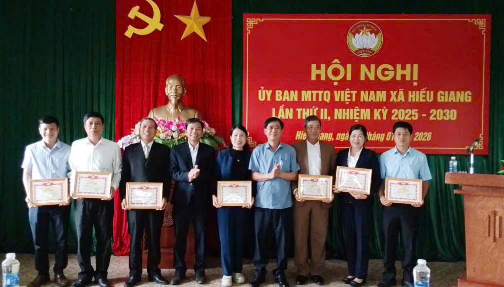 Dịp này, Ủy ban MTTQ Việt Nam xã đã trao giấy khen cho 8 tập thể và 8 cá nhân đạt thành tích xuất sắc trong công tác Mặt trận năm 2025, qua đó động viên, khích lệ phong trào thi đua yêu nước, góp phần xây dựng quê hương Hiếu Giang ngày càng phát triển bền vững.
