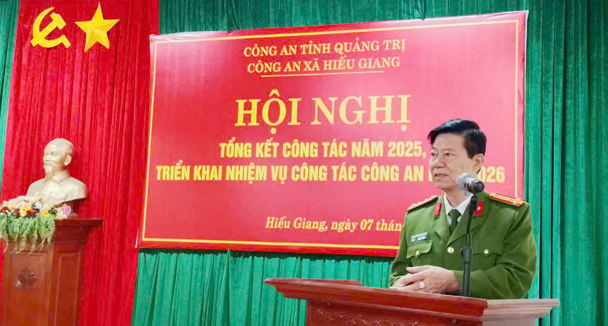 Phát biểu chỉ đạo tại hội nghị, Đại tá Lê Phương Nam, Phó Giám đốc Công an tỉnh và đồng chí Nguyễn Thanh Bắc, Phó Bí thư Đảng ủy, Chủ tịch UBND xã ghi nhận, biểu dương những kết quả mà Công an xã Hiếu Giang đạt được trong thời gian qua. Đồng thời, đề nghị lực lượng Công an xã tiếp tục phát huy tinh thần trách nhiệm, đoàn kết, chủ động bám sát cơ sở, nâng cao chất lượng công tác tham mưu, thực hiện tốt các mặt công tác nghiệp vụ, đáp ứng yêu cầu nhiệm vụ bảo đảm an ninh, trật tự trong tình hình mới. Đặc biệt, trọng tâm là công tác đảm bảo an ninh trật tự trên địa bàn trước thềm Đại hội Đảng toàn quốc lần thứ XIV và cuộc bầu cử Đại biểu Quốc hội và HĐND các cấp nhiệm kỳ 2026 – 2031.