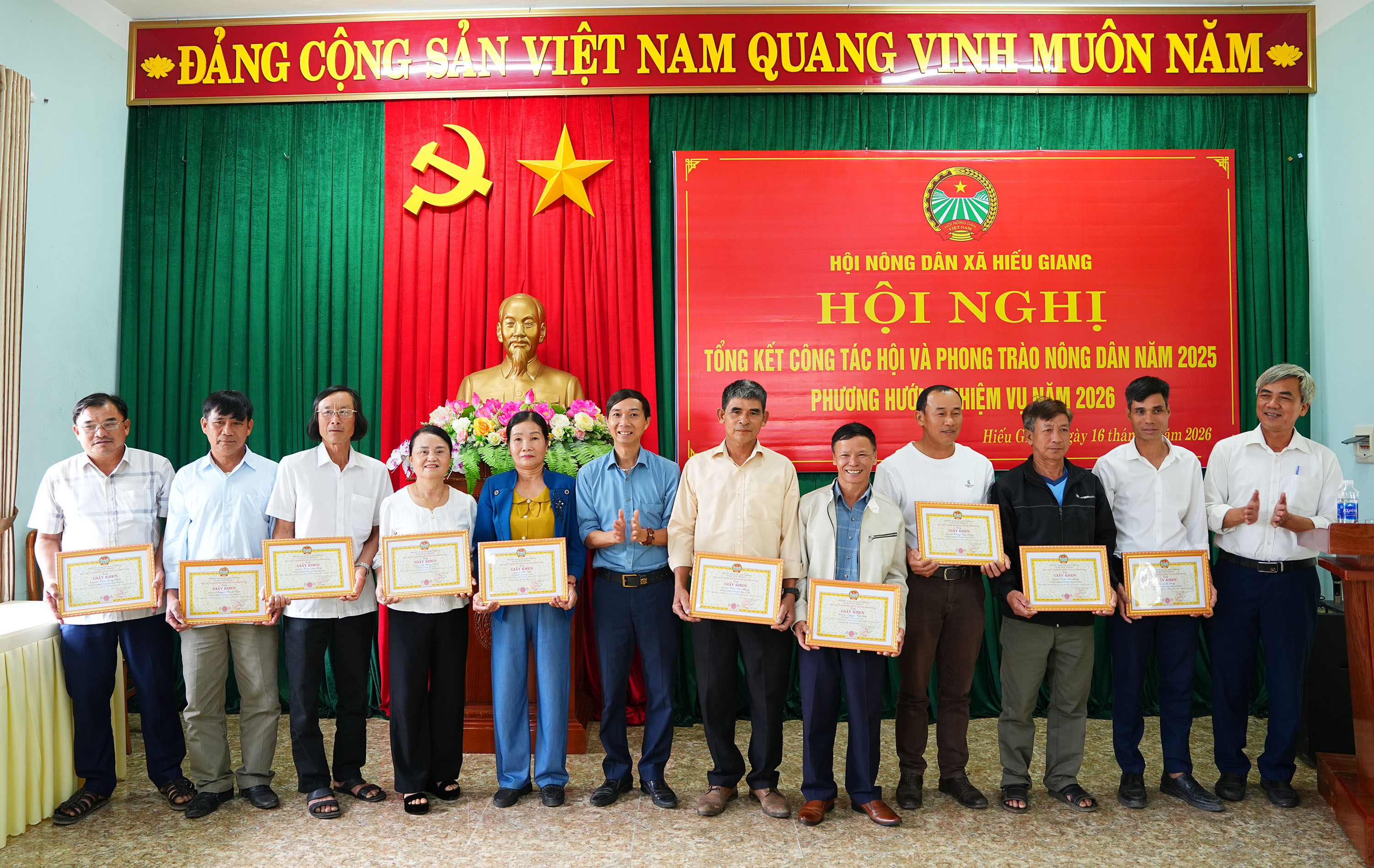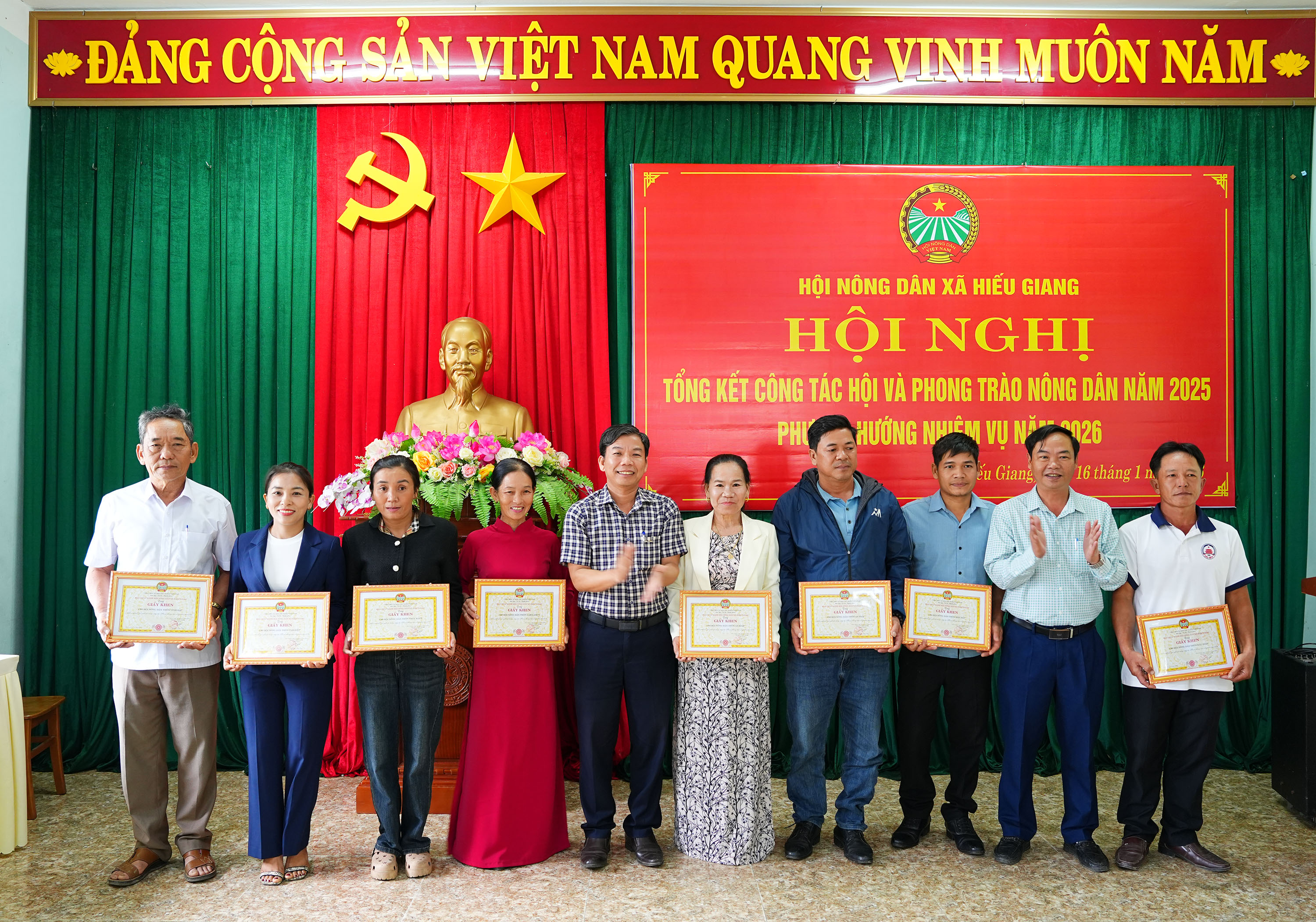 Dịp này, Hội Nông dân xã đã trao tặng giấy khen cho 8 tập thể và 12 cá nhân có thành tích xuất sắc trong năm 2025; 1 cá nhân vinh dự được nhận giấy khen của Hội Nông dân tỉnh Quảng Trị.