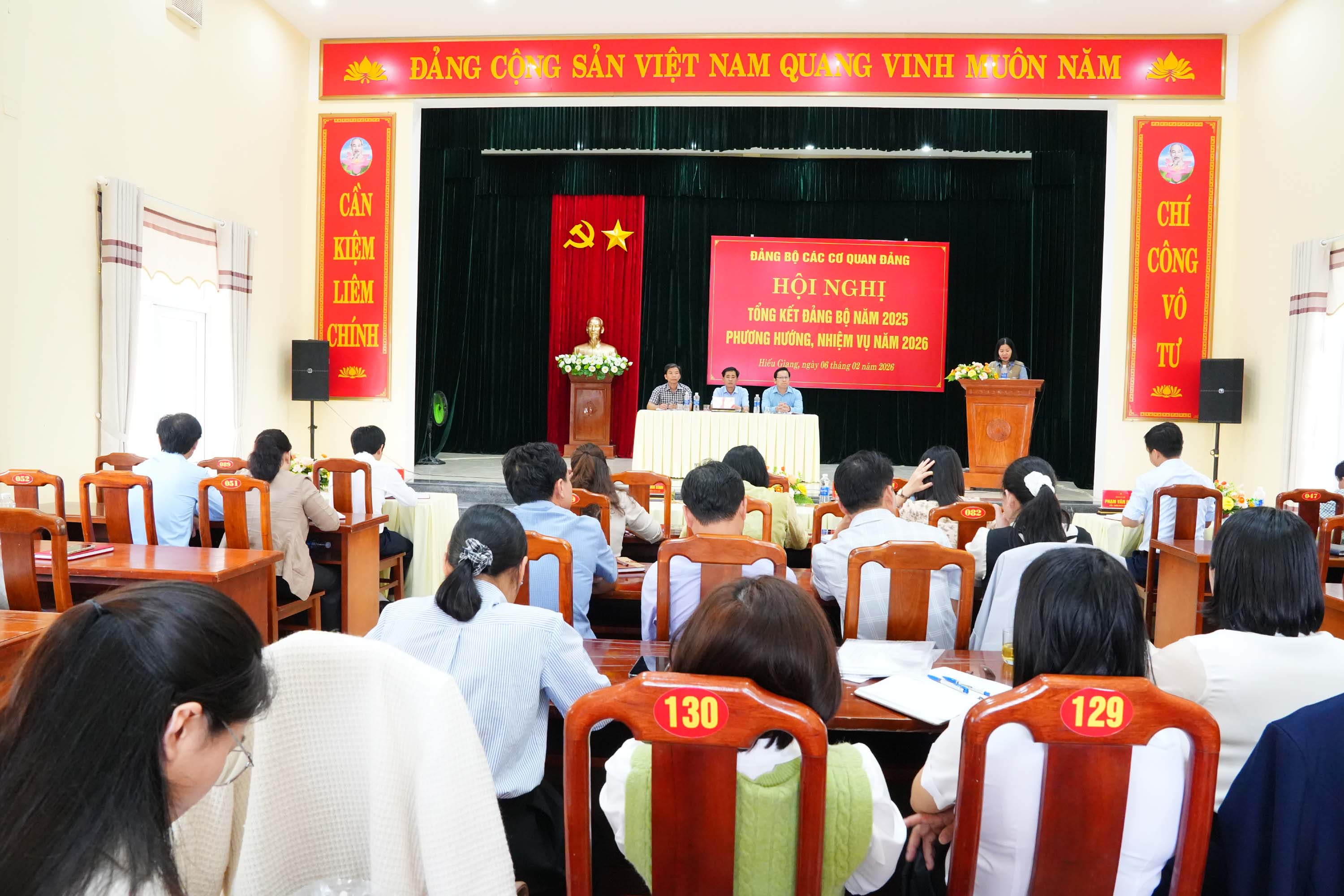 Ngày 6/2/2026, Đảng bộ các cơ quan Đảng xã Hiếu Giang tổ chức hội nghị tổng kết công tác Đảng năm 2025; phương hướng, nhiệm vụ năm 2026. Dự và đồng chủ trì hội nghị có các đồng chí: Trần Vũ Minh, Phó Bí thư Thường trực Đảng ủy xã, Bí thư Đảng bộ các cơ quan Đảng; Nguyễn Thanh Bình, UVBTV Đảng ủy, Chủ tịch Ủy ban MTTQVN xã; Nguyễn Thanh Lâm, UVTV, Chủ nhiệm UBKT Đảng ủy xã.