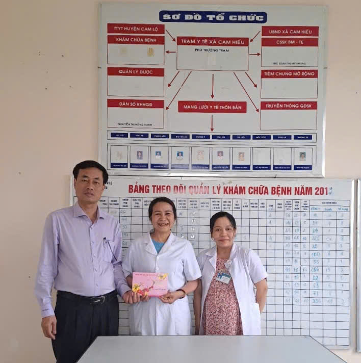 Đồng chí Nguyễn Thanh Bắc, Phó Bí thư Đảng ủy, Chủ tịch UBND xã thăm, chúc Tết Trạm Y tế xã