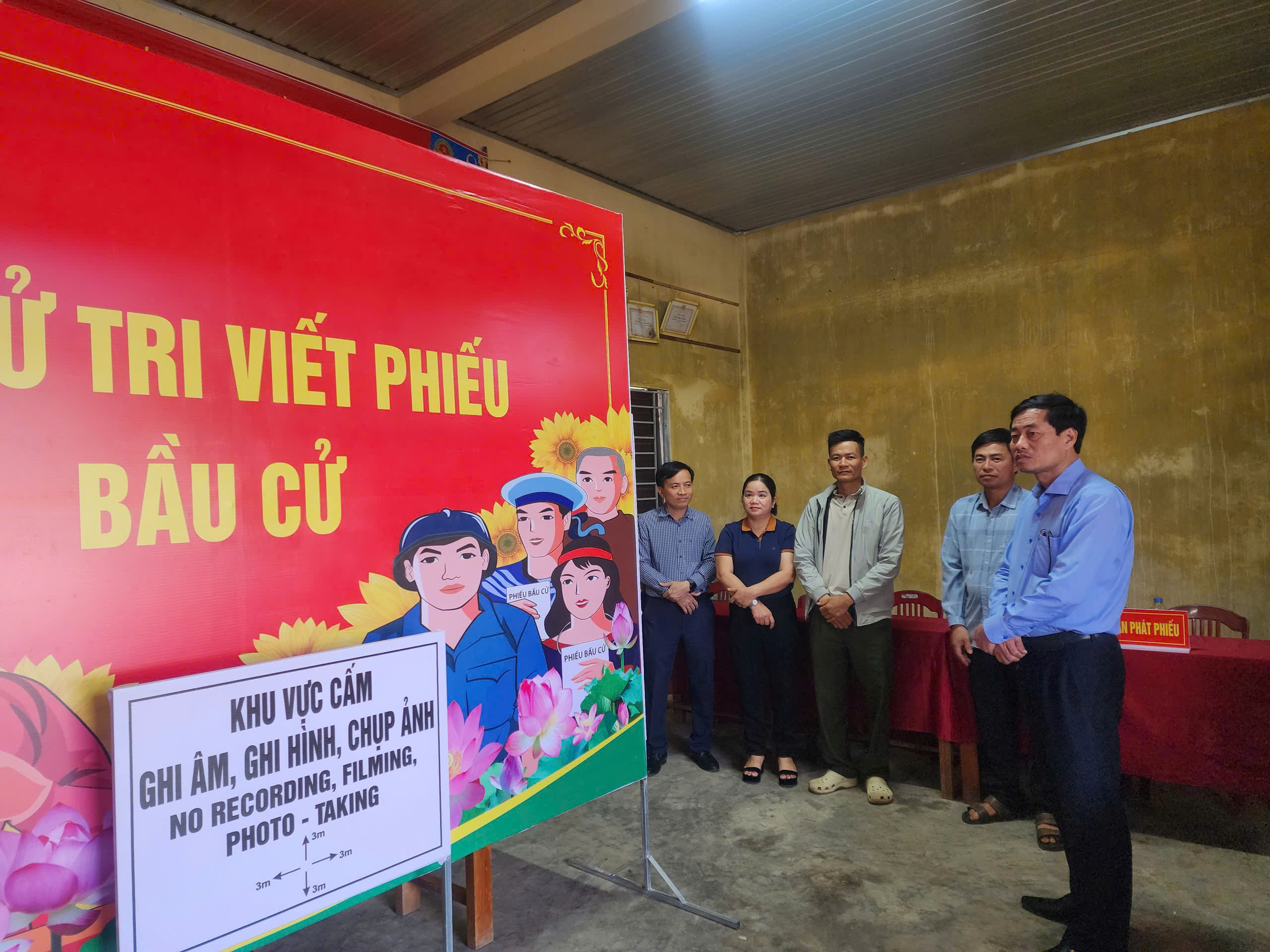 Lãnh đạo xã Hiếu Giang kiểm tra khâu cuối cùng trước giờ bầu cử chính thức