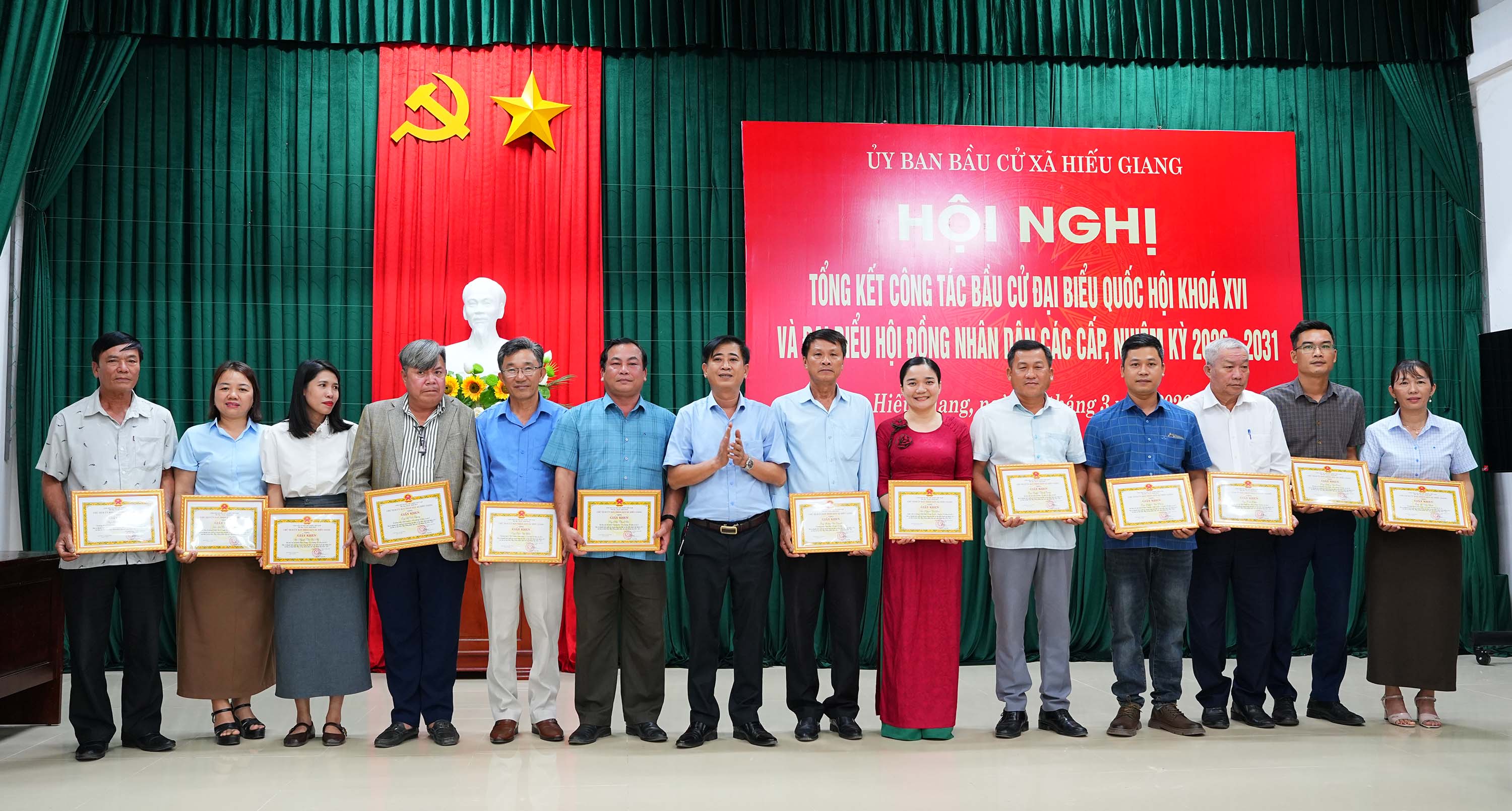 Dịp này, xã Hiếu Giang đã tổ chức khen thưởng cho 3 tập thể và 24 cá nhân có thành tích xuất sắc trong công tác tổ chức và phục vụ bầu cử.