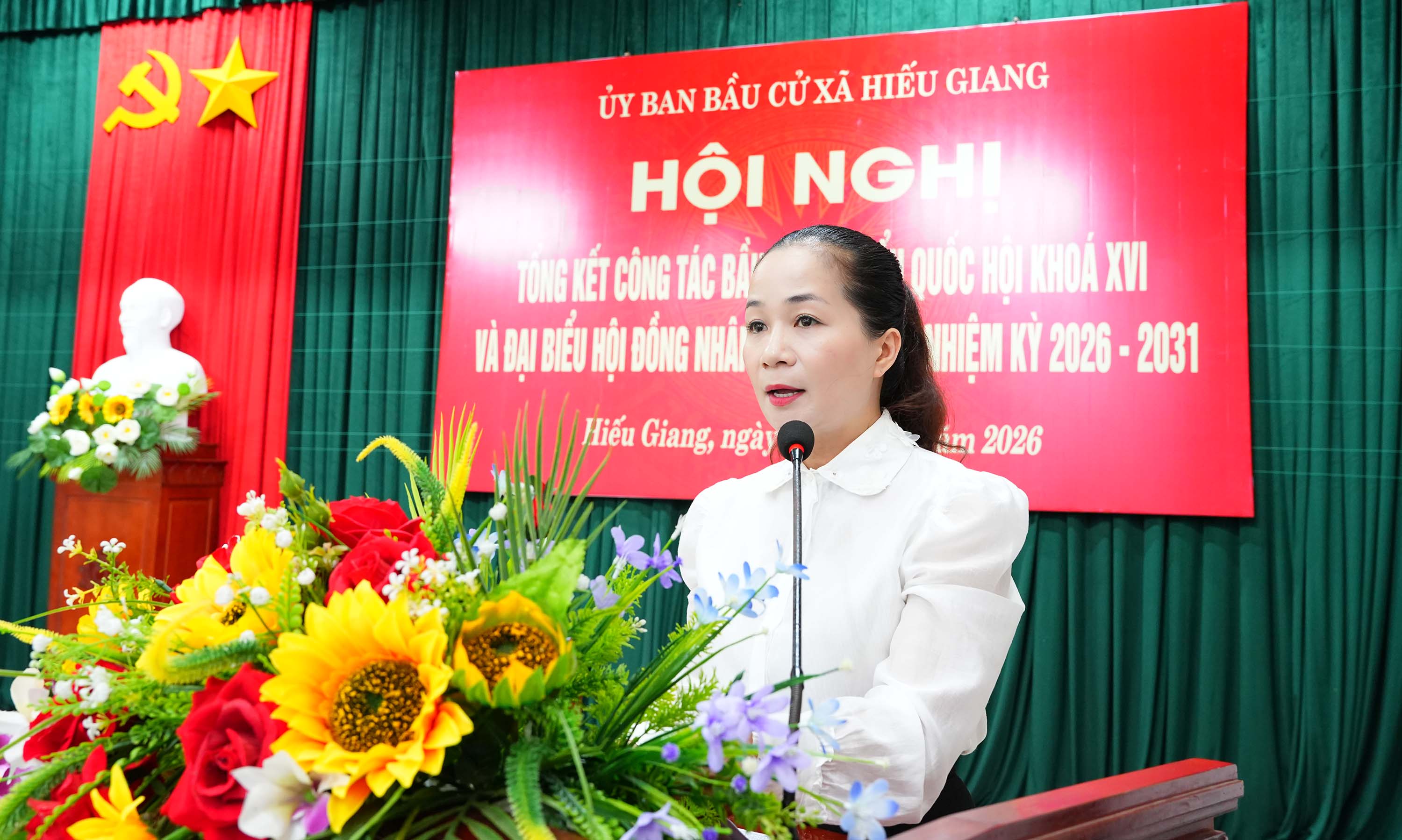 Báo cáo tổng kết tại hội nghị khẳng định: Cuộc bầu cử đại biểu Quốc hội khóa XVI và đại biểu HĐND các cấp nhiệm kỳ 2026-2031 trên địa bàn xã Hiếu Giang đã được tổ chức nghiêm túc, dân chủ, đúng pháp luật và thành công toàn diện.