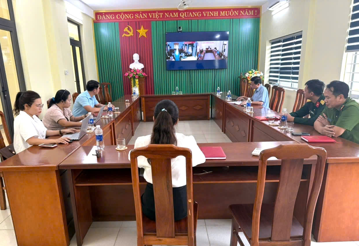 Quang cảnh hội nghị trực tuyến tại điểm cầu xã Hiếu Giang