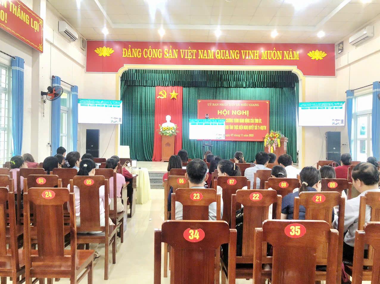 Ngày 07/11/2025, UBND xã Hiếu Giang tổ chức điểm cầu Hội nghị trực tuyến triển khai Nghị quyết số 71 của Bộ Chính trị về đột phá phát triển giáo dục và đào tạo và phổ biến giáo dục pháp luật năm 2025 theo Kế hoạch số 1828/KH-SGDĐT ngày 23/10/2025 của Sở Giáo dục và Đào tạo tỉnh Quảng Trị.