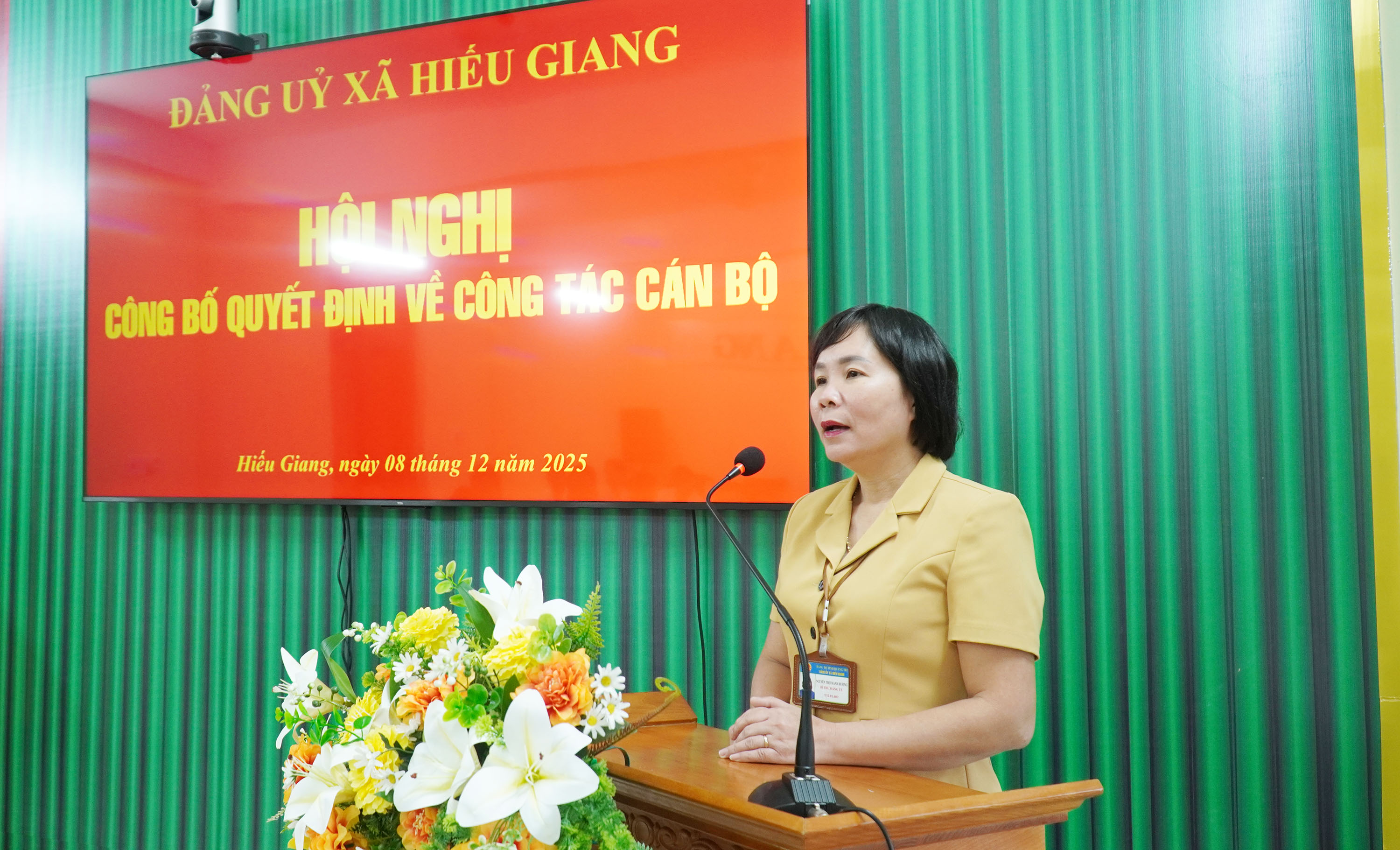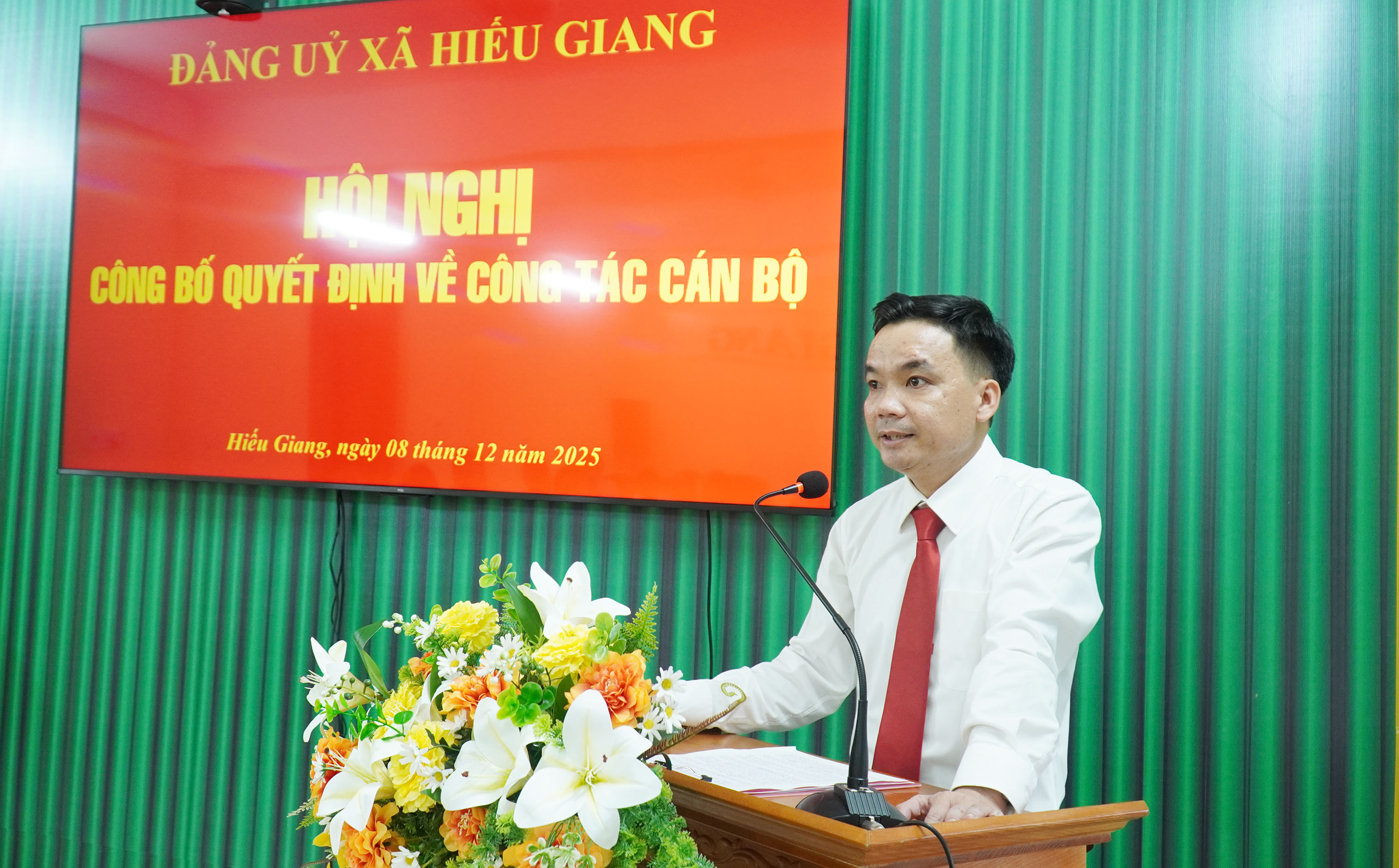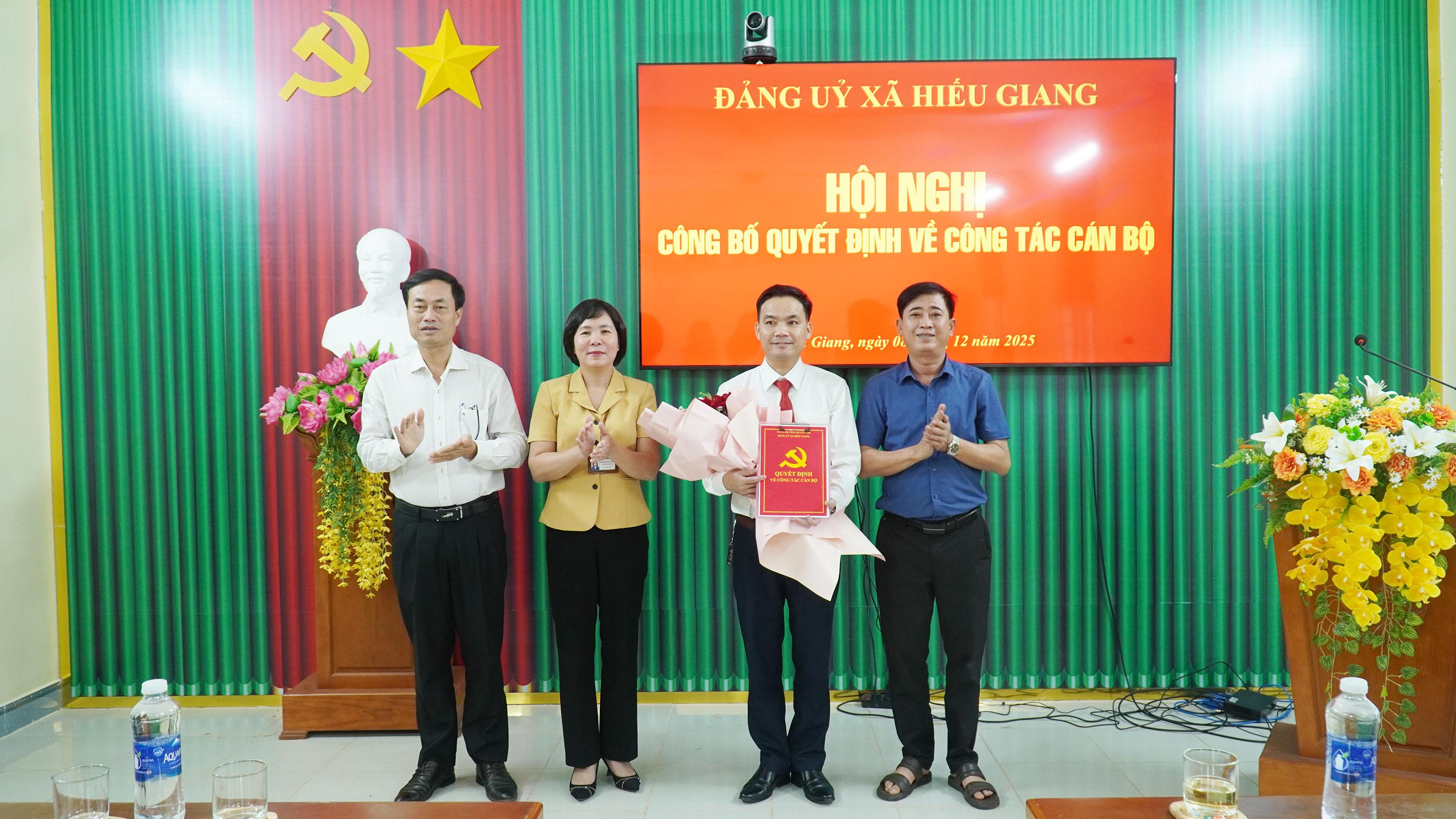Ngày 8/12/2025, Đảng ủy xã Hiếu Giang tổ chức hội nghị công bố quyết định bổ nhiệm cán bộ lãnh đạo, quản lý đối với chức danh Trưởng ban Xây dựng Đảng. Dự hội nghị có các đồng chí: Nguyễn Thị Thanh Hương, Bí thư Đảng ủy, Chủ tịch HĐND xã; Trần Vũ Minh, Phó Bí thư Thường trực Đảng ủy xã; Nguyễn Thanh Bắc, Phó Bí thư Đảng ủy, Chủ tịch UBND xã.