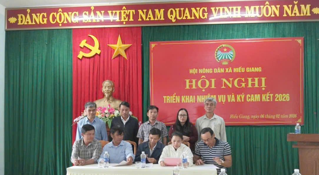 Ngày 6/2/2026, Hội Nông dân xã Hiếu Giang đã tổ chức hội nghị triển khai nhiệm vụ và ký kết giao ước thi đua năm 2026 nhằm tạo sự thống nhất trong thực hiện các mục tiêu, nhiệm vụ và giải pháp trọng tâm trong công tác Hội và phong trào nông dân năm 2026. Dự hội nghị có đồng chí Nguyễn Thanh Bình, UVBTV Đảng ủy, Chủ tịch Ủy ban MTTQVN xã.