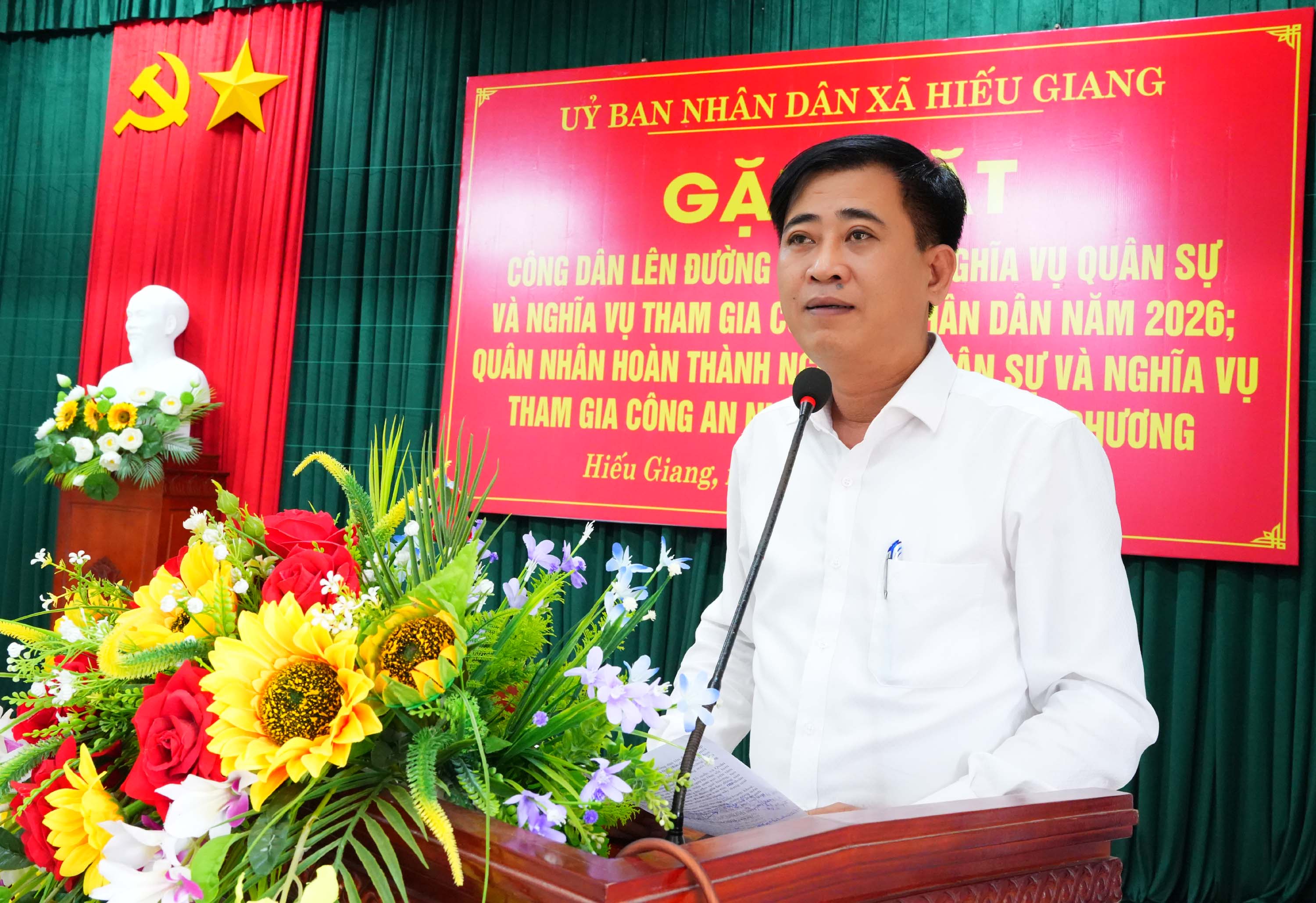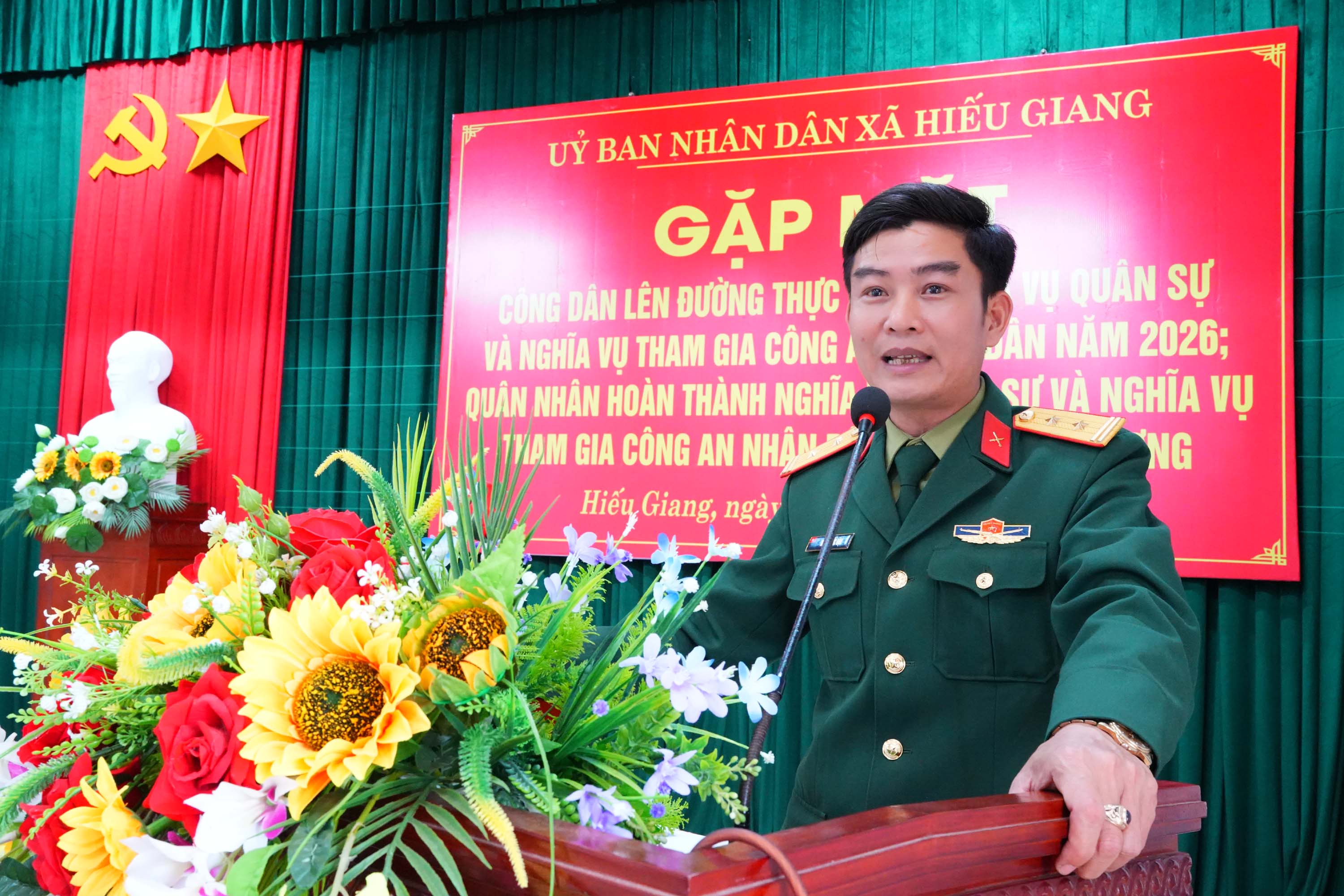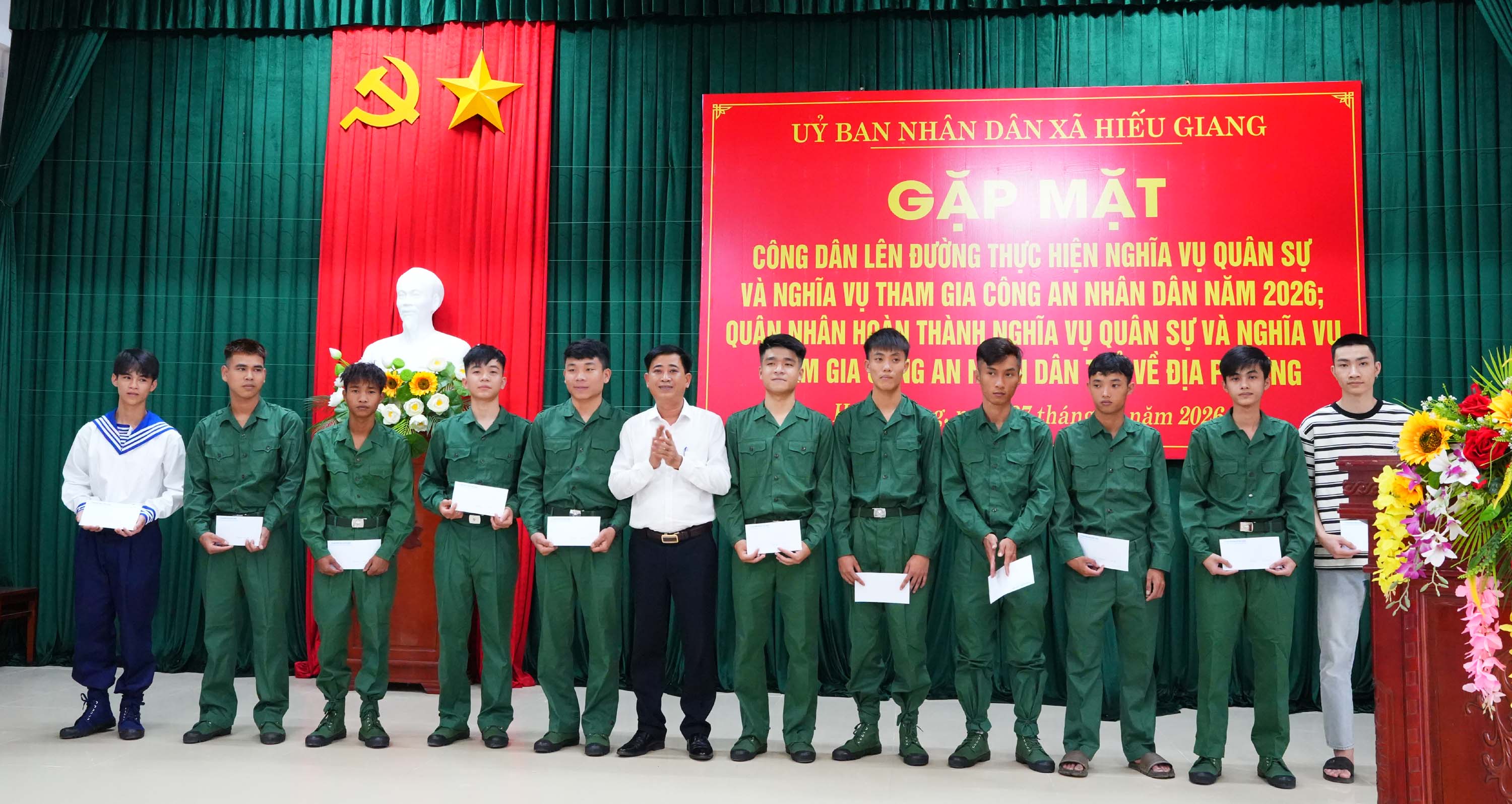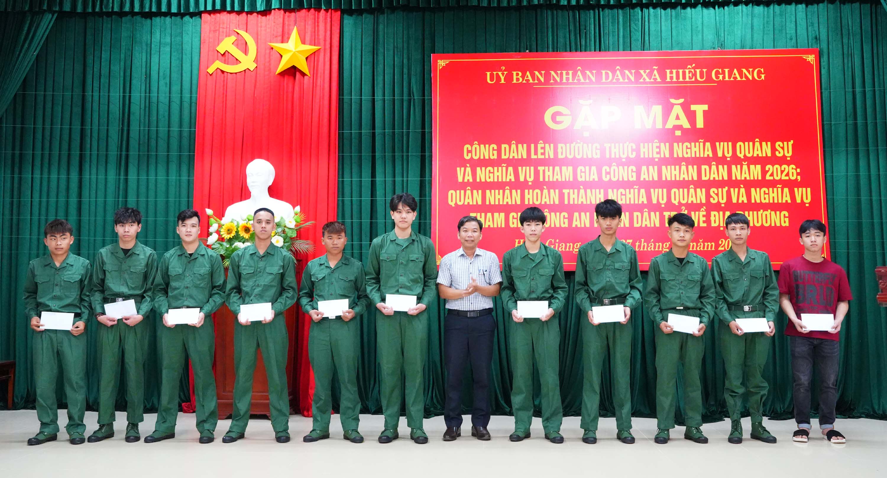 Chiều 27/2/2026, xã Hiếu Giang tổ chức gặp mặt, tặng quà, động viên các công dân lên đường thực hiện nghĩa vụ quân sự, nghĩa vụ Công an nhân dân năm 2026 và quân nhân hoàn thành nghĩa vụ quân sự, nghĩa vụ Công an nhân dân trở về địa phương. Dự buổi gặp mặt có đồng chí Trần Vũ Minh, Phó Bí thư Thường trực Đảng ủy xã; đồng chí Nguyễn Thanh Bình, UVBTV Đảng ủy, Chủ tịch Ủy ban MTTQVN xã cùng các đồng chí trong Thường trực Đảng ủy, HĐND, UBND, Ủy ban MTTQ Việt Nam xã.
