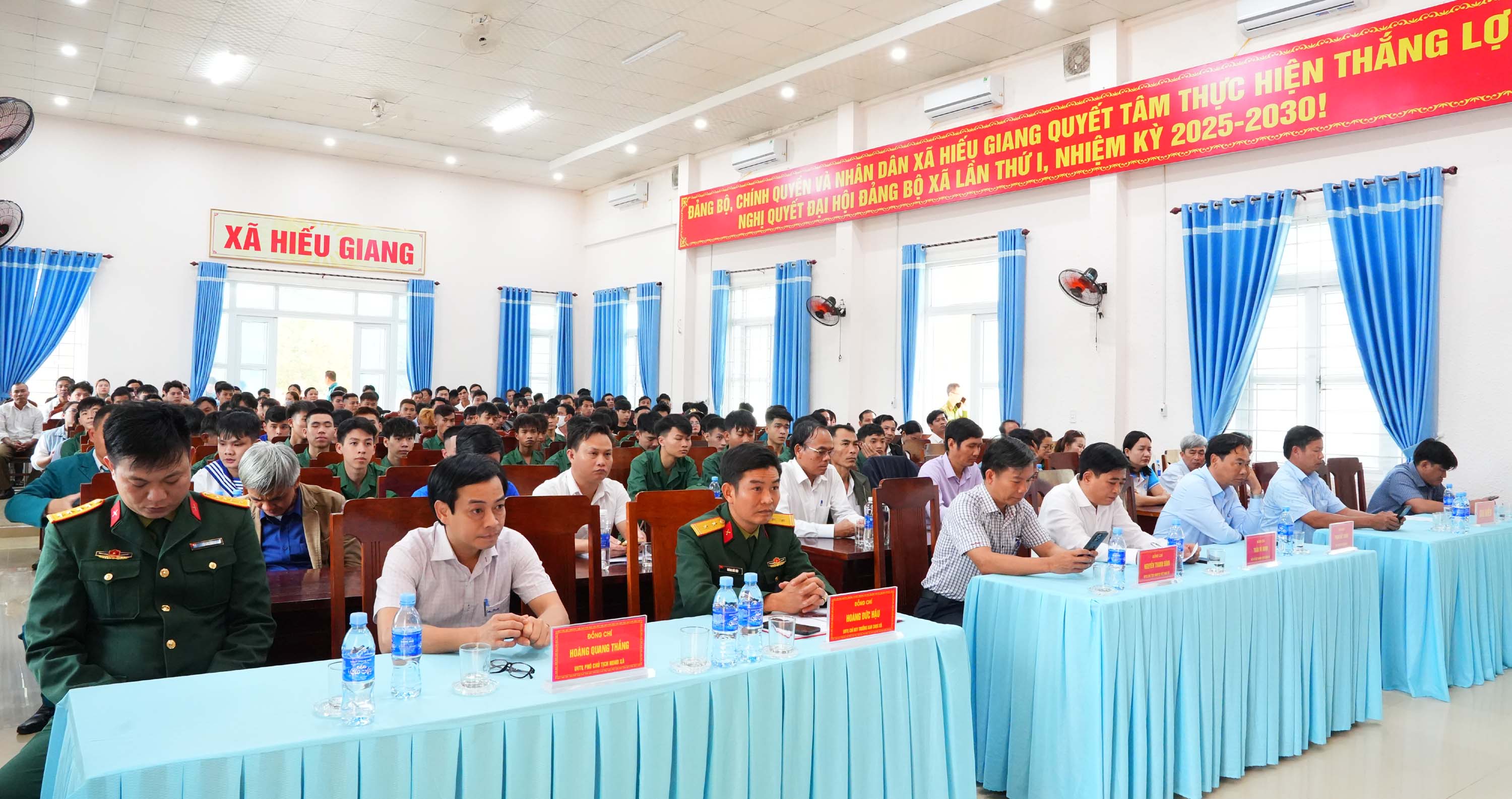 Năm 2026, xã Hiếu Giang có 60 công dân lên đường nhập ngũ, trong đó có 43 công dân thực hiện nghĩa vụ quân sự, 8 công dân thực hiện nghĩa vụ Công an nhân dân và 9 công dân dự bị; qua các khâu rà soát, sơ tuyển, khám tuyển và xét duyệt chính trị, các thanh niên có đủ sức khỏe, tinh thần trách nhiệm cao, ý thức tổ chức kỷ luật tốt. Đồng thời, đón nhận 39 quân nhân hoàn thành nghĩa vụ quân sự trở về địa phương.
