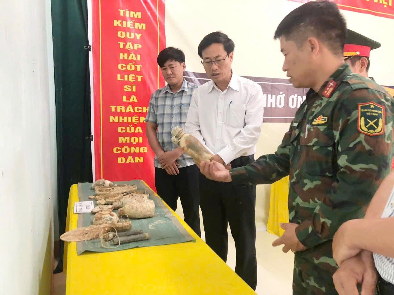 Hai hài cốt liệt sĩ được phát hiện ở độ sâu khoảng 1,5m, cách nhau từ 30-40cm; phần lớn xương đã vỡ vụn, phân hủy. Hài cốt thứ nhất còn 11 chiếc răng, hài cốt thứ hai còn 16 chiếc răng. Di vật kèm theo 2 hài cốt gồm: 3 bình tông, 2 đôi giày, 12 cúc áo, 1 xẻng bộ binh, cao Sao Vàng, 1 bát B52, dây thông tin.