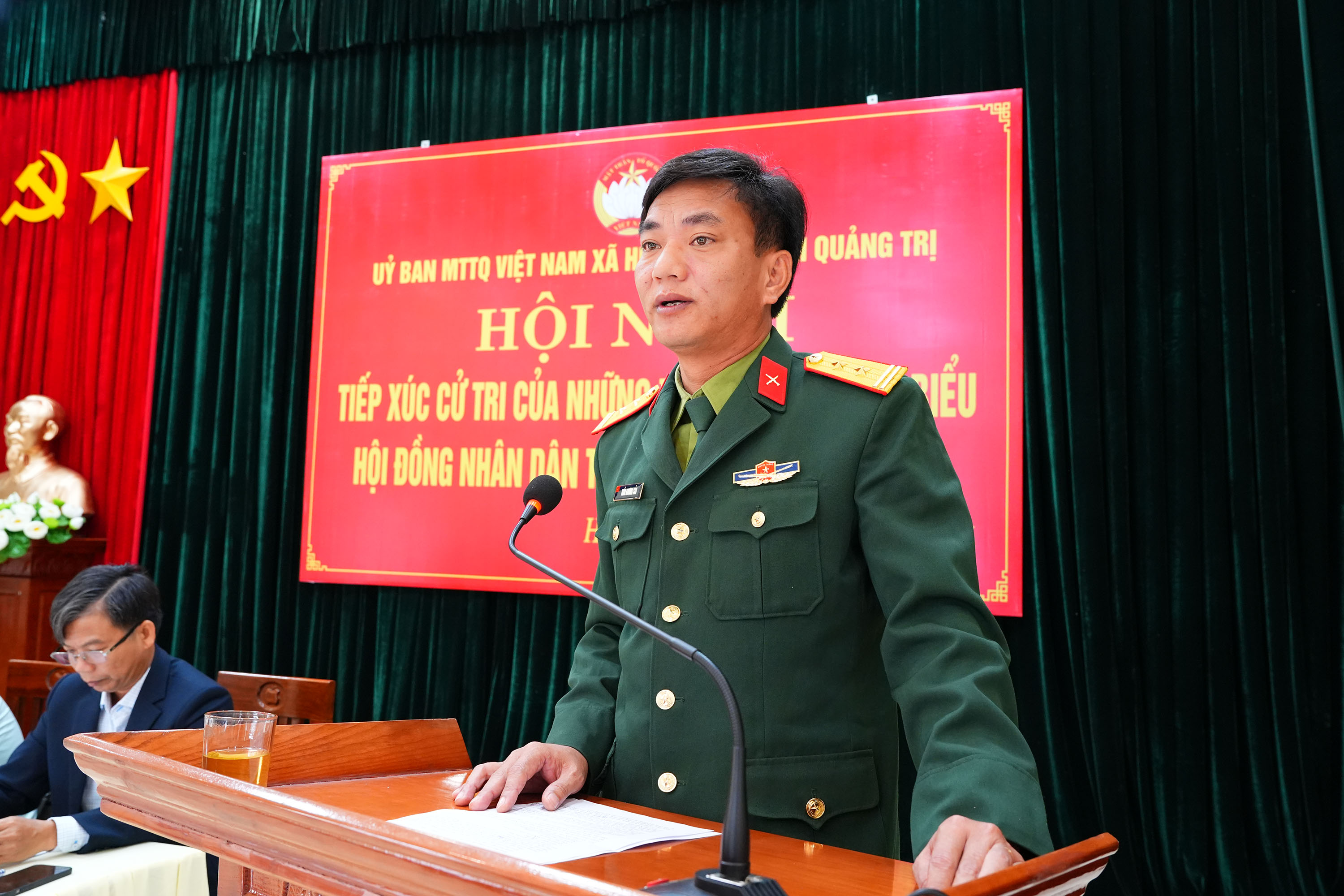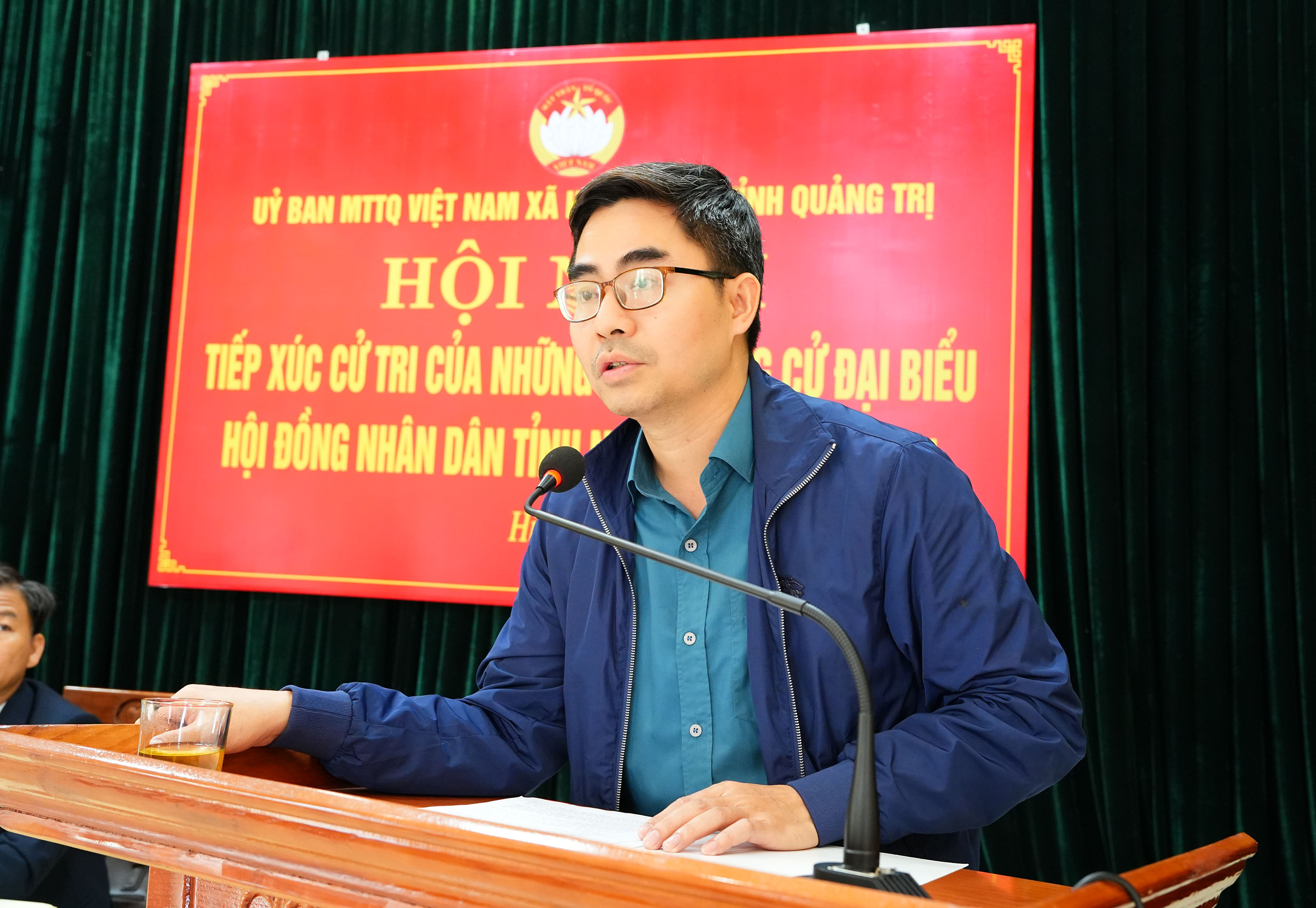 Tại buổi tiếp xúc, cử tri đã được nghe giới thiệu tiểu sử tóm tắt, quá trình công tác và chương trình hành động của 5 ứng cử viên đại biểu HĐND tỉnh nhiệm kỳ 2026 - 2031 thuộc Đơn vị bầu cử số 3 gồm: Ông Đỗ Văn Bình, Tỉnh ủy viên, Bí thư Đảng ủy, Chủ tịch HĐND xã Cam Lộ; Ông Hoàng Xuân Đông, Ủy viên Ban Chấp hành Đảng bộ Quân sự tỉnh, Đại tá, Phó Chỉ huy trưởng Bộ Chỉ huy Quân sự tỉnh Quảng Trị; Ông Đinh Phạm Văn Minh, công chức Phòng Công tác HĐND, Văn phòng Đoàn ĐBQH và HĐND tỉnh Quảng Trị; Bà Đặng Mai Nhi, Phó Trưởng ban Văn hóa – Xã hội, HĐND tỉnh Quảng Trị; Ông Trần Khương Sản, Ủy viên Ban Chấp hành Đảng bộ Phòng Tham mưu, Trung tá, Phó Tham mưu trưởng Bộ Chỉ huy Quân sự tỉnh Quảng Trị.