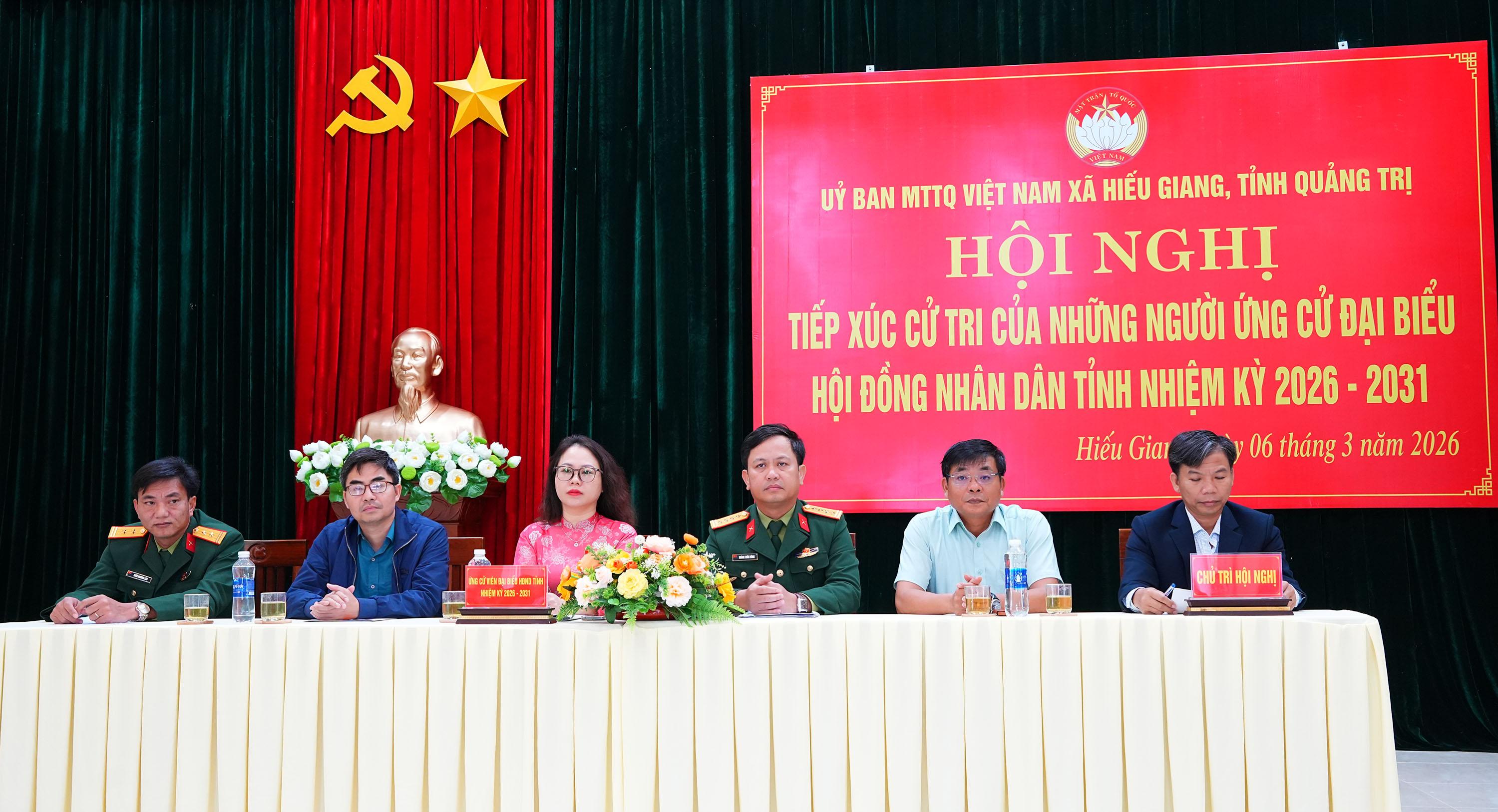 Sáng 6/3/2026, Ủy ban Mặt trận Tổ quốc Việt Nam xã Hiếu Giang tổ chức hội nghị tiếp xúc cử tri với các ứng cử viên đại biểu HĐND tỉnh Quảng Trị nhiệm kỳ 2026 – 2031. Đồng chí Nguyễn Thanh Bình, UVBTV Đảng ủy, Chủ tịch Ủy ban MTTQVN xã chủ trì hội nghị.