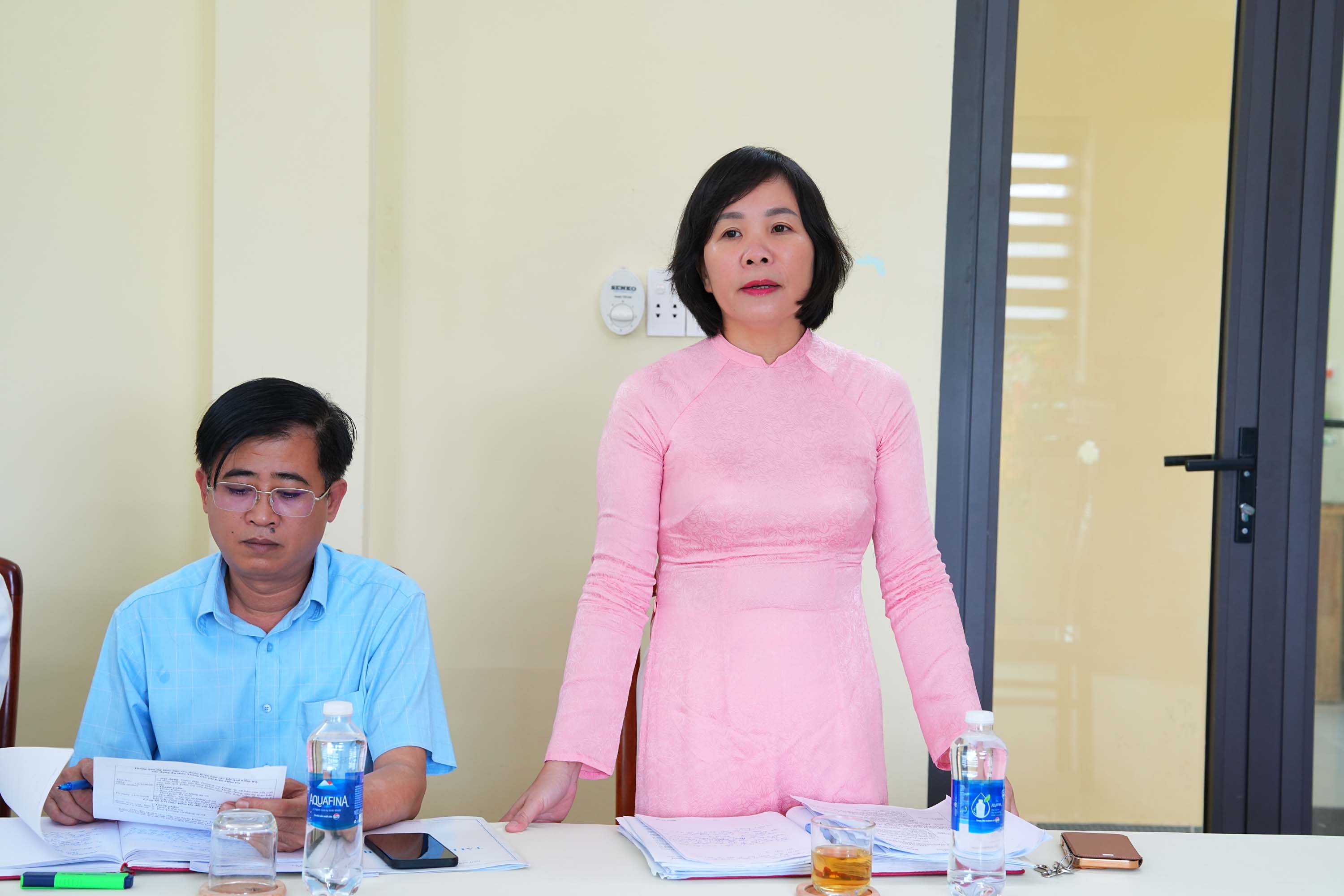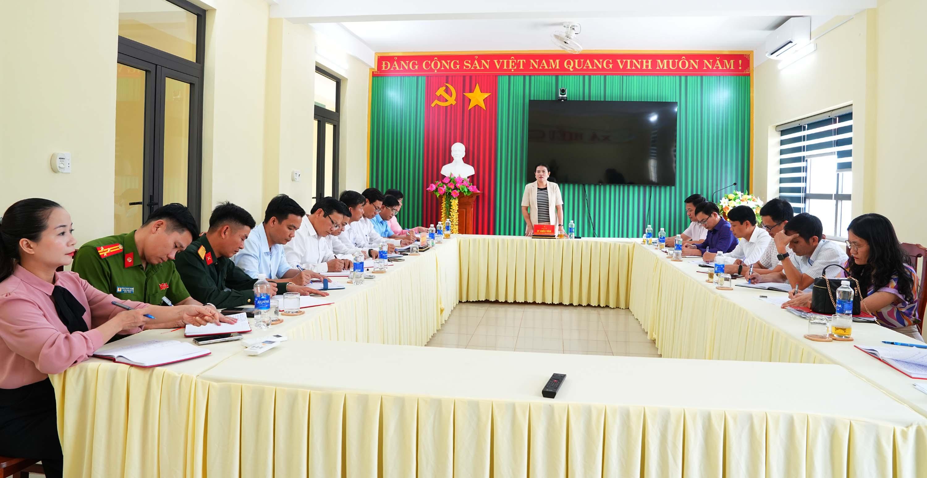 Đồng chí Nguyễn Thị Thanh Hương, Bí thư Đảng ủy, Chủ tịch HĐND xã phát biểu tại buổi làm việc
