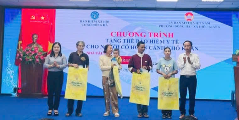 Theo đó, đã có 20 đối tượng là đoàn viên, hội viên có hoàn cảnh khó khăn trên địa bàn xã được trao tặng thẻ BHYT với tổng trị giá hơn 12 triệu đồng. Toàn bộ nguồn kinh phí do Ngân hàng TMCP Ngoại thương Việt Nam và Ngân hàng Nông nghiệp và Phát triển nông thôn, Chi nhánh Quảng Trị hỗ trợ.